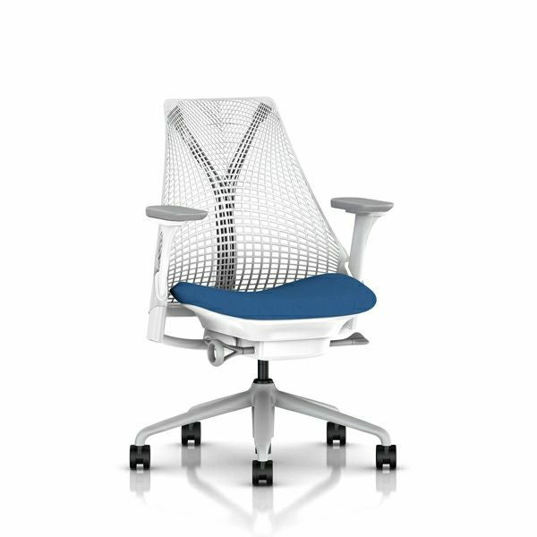 セイルチェア セイルチェア アーム:フルアジャスタブルアーム/サポートオプション:ランバーサポートなし/ベース&フレーム:フォグベース、ホワイトフレーム/キャスター:堅床・カーペット用/サスペンションフィニッシュ:スタジオホワイト/アームフィニッシュ:フォグ/張地:ファブリック(メドレー:ブルーグロット)