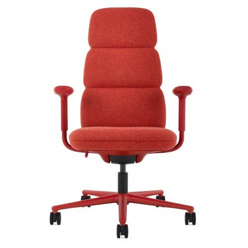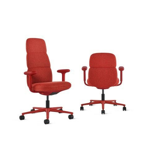 ハーマンミラーのアサリチェアは、丸みを帯びたフレームを張地で覆った有機的なフォルムにデザインされています。人間工学に基づいた特許取得済みのテクノロジー(ポスチャーフィット)を搭載した背もたれが腰を支え、背骨を自然なカーブに整えます。オフィスチェアながら柔らかい座り心地で、マハラム社のファブリックとレザーからお好みの素材と色を選択して、空間にアクセントを添えたり溶け込ませたりできます。