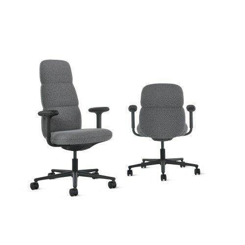 ハーマンミラーのアサリチェアは、丸みを帯びたフレームを張地で覆った有機的なフォルムにデザインされています。人間工学に基づいた特許取得済みのテクノロジー(ポスチャーフィット)を搭載した背もたれが腰を支え、背骨を自然なカーブに整えます。オフィスチェアながら柔らかい座り心地で、マハラム社のファブリックとレザーからお好みの素材と色を選択して、空間にアクセントを添えたり溶け込ませたりできます。