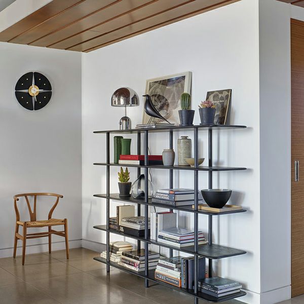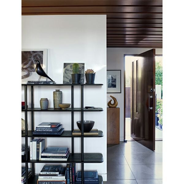 初期の翼を重ね持つ飛行機である複葉機にインスパイアされ、緩やかにカーブしたエッジの棚板は柔らかな彫刻的な印象を与えています。エアロは、シンガポールとニューヨークを拠点に活躍しているデザイナーガブリエル・タンによるデザインで、手塗りの顔料で仕上げられており、木目がはっきりと見えるようになっています。ハイシェルビングでは、底面の棚板に重りをつけて安定性を高めています。マレーシア製。