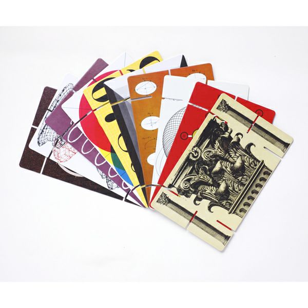 チャールズ&レイ・イームズが1952年にデザインしてから半世紀以上たつ現代でも愛されつづけるロングセラー商品。イームズのおもちゃの中で「もっとも成功したおもちゃ」といわれています。動物、鉱物、野菜や色鉛筆などさまざまな写真や模様がプリントされたカードには切り込みがあり、その切り込みに別のカードを差し込み、自由に立体を組み立てて遊ぶことができます。もともとはイームズ夫妻の孫や友人のために作られたもので、チャールズとレイが言うところの「動物や植物や鉱物の世界から集めてきたすてきなもの」を日々の暮らしに取り入れて楽しむためのものとして作られました。