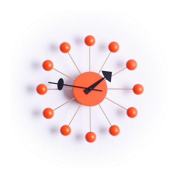 ボールクロックは1949年にネルソンオフィスのデザインディレクターを務めたアーヴィン・ハーパーによってデザインされました。 デザイン時計の定番としてどこかで見たことがある方が多いのではないでしょうか?ロッド先端のボール部分は木製なので、ポップながらも柔らかい印象を与えてくれます。ネルソンクロックとも呼ばれる一連のシリーズは、その特徴的な形態からデザインの古典的なアイコンともなっています。 時計としての機能だけではなく、見て楽しいインテリアのアクセントとしても非常に人気があります。 アメリカンテイストのお部屋にはもちろん、モダンなテイストのインテリアにもどんなスタイルにもマッチします。1999年からはヴィトラ社より復刻して生産しています。メカニックはドイツ最大の時計メーカーのユンハンス社製。