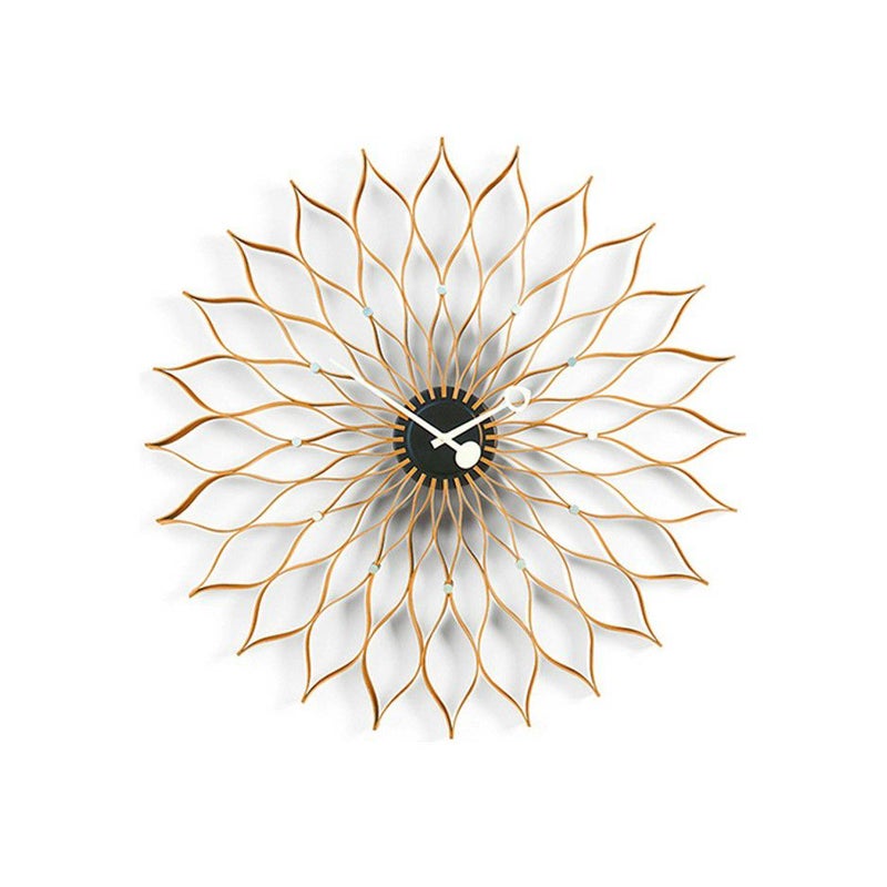 サンフラワークロックは1957年にネルソンオフィスのデザインディレクターを務めたアーヴィン・ハーパーによってデザインされました。デザイン時計の定番としてどこかで見たことがある方が多いのではないでしょうか?ネルソンクロックとも呼ばれる一連のシリーズは、その特徴的な形態からデザインの古典的なアイコンともなっています。 時計としての機能だけではなく、見て楽しいインテリアのアクセントとしても非常に人気があります。 ミッドセンチュリーを彷彿とさせるアメリカンテイストのお部屋にはもちろん、モダンなテイストのインテリアにもどんなスタイルにもマッチします。2003年からはヴィトラ社より復刻して生産しています。メカニックはドイツ最大の時計メーカーのユンハンス社製。
