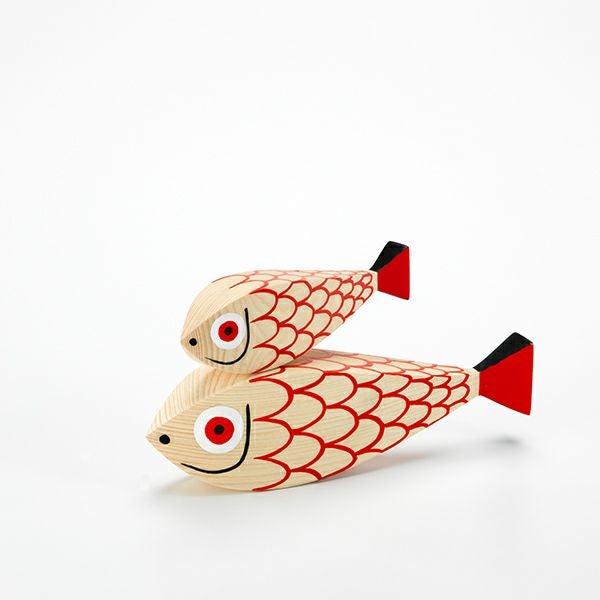 アレキサンダー・ジラードのウッデンドールズコレクションの陽気な家族に、新たに魚の親子が加わりました。 魚の親子は横長型で、スタンディングが特徴のコレクションの中では異彩を放つ存在でとてもかわいらしい仲間です。