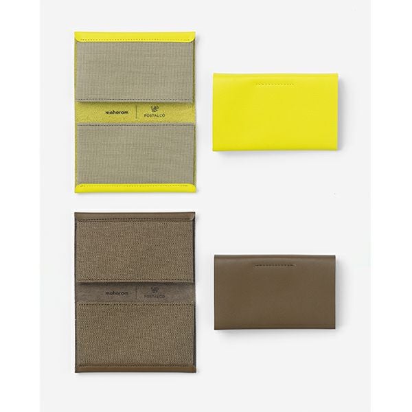 ニューヨークのテキスタイルブランド、マハラムの素材とオランダのデザインスタジオ、ショルテン&バーイングスの絶妙な色彩感覚がポスタルコのクラシックなアイテムと合わさり、特別なコラボレーション商品ができました。ポスタルコが定番としているプレスコットンとマハラムのレザー“Hue”を使用したリーガルエンベロップ、トラベルウォレット、ツールボックス、カードホルダーの4種類を発売します。