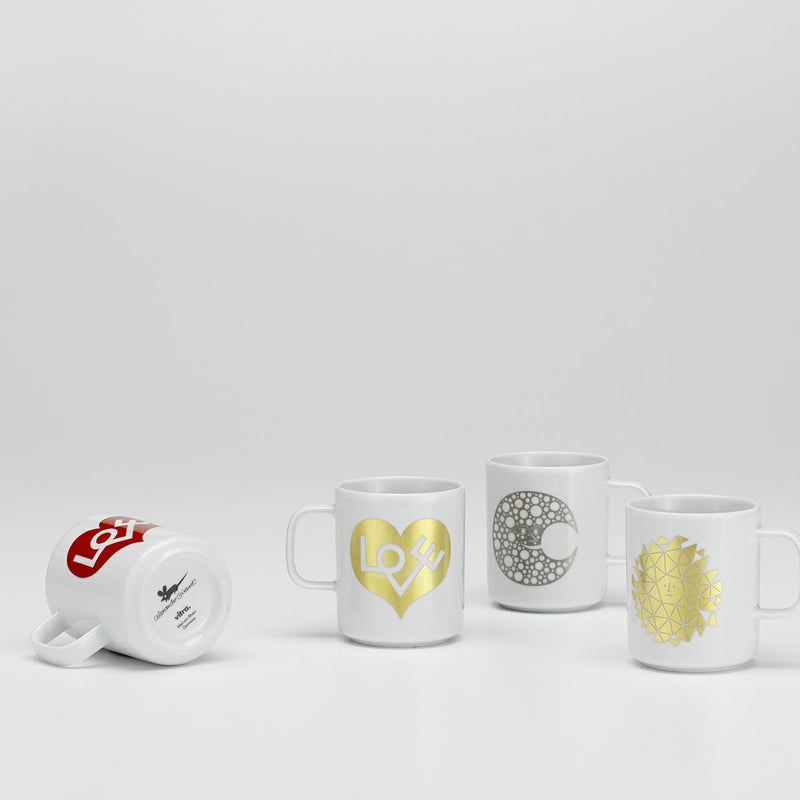 「コーヒー マグ」に用いられた「ラブ ハート」や「サン」などのモチーフは、現代のあらゆる暮らしの場面をさりげなくも豊かに彩るように、アレキサンダー・ジラードのレストランにまつわるデザインを起源としています。