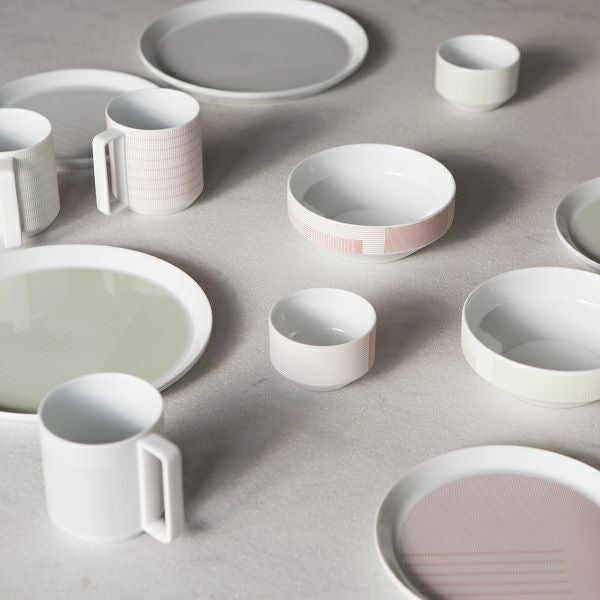 ショルテン&バーイングスのディレクションのもとで特別にデザインしたポーセリンコレクション。1616 / arita japanプロデュースによる本シリーズは伝統的な有田焼に新しいデザインアプローチを取り入れました。有田焼の伝統色を再解釈し、自身がデザインしたテキスタイルGridのパターンを融合させ「カラーポーセリン」シリーズを創り出しました。 カップ・ボウル・マグなど5種類のカラーポーセリンはシンプルさと色の重なりが特徴です。 9mもの大きなリピートをもつテキスタイルのスケールを大幅に縮小し、線や色の重なりによって淡く果敢ない色味を表現しています。 ステファン・ショルテンは「格子模様の密度が色の濃淡を決め、単色よりエアリーに見えるのです」と説明し、他にないユニークな世界観を生み出しています。 1616/arita japan:デザイナー柳原照弘氏ディレクションによる陶磁器ブランド 佐賀県・有田は1616年に陶祖・李参平によって日本で最初に陶磁器が作られたとされる場所です。 400年以上の長い時間を経ても、色あせる事のない妥協の無いものづくりの精神は今日にも受け継がれています。 伝統を踏襲しながらも、これまでの有田焼とは異なるデザインアプローチを試みています。