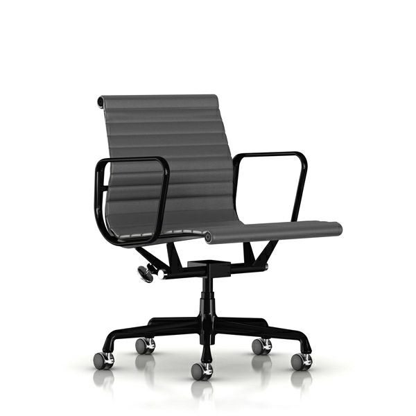 イームズアルミナムグループマネジメントチェア/キャスター ガス圧シリンダーリフト イームズアルミナムグループマネジメントチェア/キャスター ガス圧シリンダーリフト キャスターまたはグレイズ:キャスター/ベース:ブラック/フレーム:ブラック/張地:皮革(グラファイト)