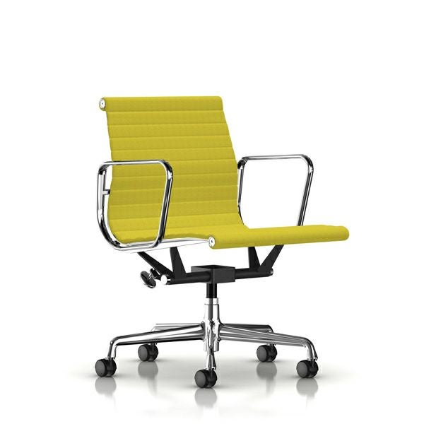 イームズアルミナムグループ マネジメントチェア イームズアルミナムグループ マネジメントチェア キャスターまたはグレイズ:キャスター/ベース:アルミバフ/フレーム:アルミバフ/張地:ホップサック(イエローダーク)