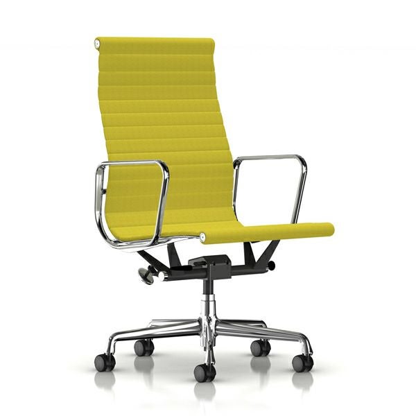 イームズアルミナムグループ エグゼクティブチェア イームズアルミナムグループ エグゼクティブチェア 座面高さ調節:ガス圧シリンダー/キャスター:カーペット用/ベース:アルミバフ/フレーム:アルミバフ/張地:ホップサック(イエローダーク)