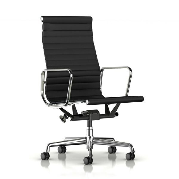 イームズアルミナムグループ エグゼクティブチェア イームズアルミナムグループ エグゼクティブチェア 座面高さ調節:ガス圧シリンダー/キャスター:カーペット用/ベース:アルミバフ/フレーム:アルミバフ/張地:皮革(ブラック)