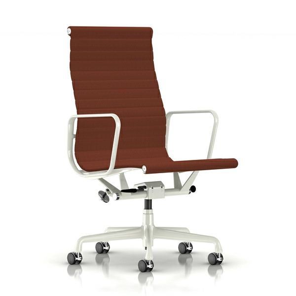 イームズアルミナムグループ エグゼクティブチェア イームズアルミナムグループ エグゼクティブチェア 座面高さ調節:ガス圧シリンダー/キャスター:カーペット用(クロームフード)/ベース:ホワイト/フレーム:ホワイト/張地:ホップサック(テラッコッタ)