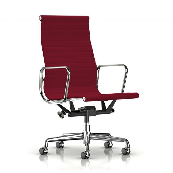 イームズアルミナムグループ エグゼクティブチェア イームズアルミナムグループ エグゼクティブチェア 座面高さ調節:ガス圧シリンダー/キャスター:カーペット用(クロームフード)/ベース:アルミバフ/フレーム:アルミバフ/張地:ホップサック(クリムソンダークダーク)