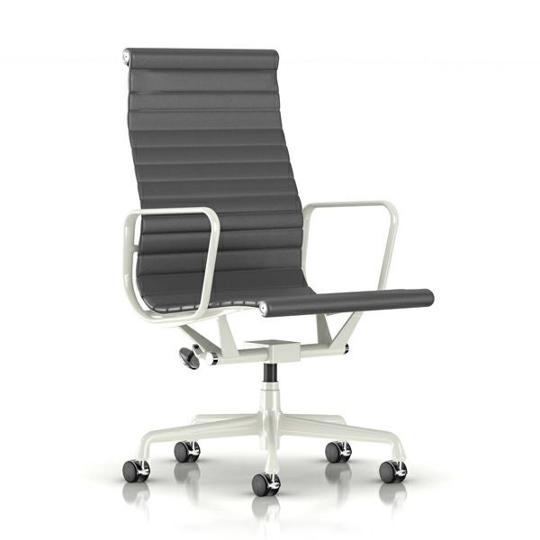 イームズアルミナムグループ エグゼクティブチェア イームズアルミナムグループ エグゼクティブチェア 座面高さ調節:手動/キャスター:カーペット用(クロームフード)/ベース:ホワイト/フレーム:ホワイト/張地:皮革(グラファイト)
