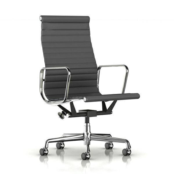 イームズアルミナムグループ エグゼクティブチェア イームズアルミナムグループ エグゼクティブチェア 座面高さ調節:手動/キャスター:カーペット用(クロームフード)/ベース:アルミバフ/フレーム:アルミバフ/張地:皮革(グラファイト)