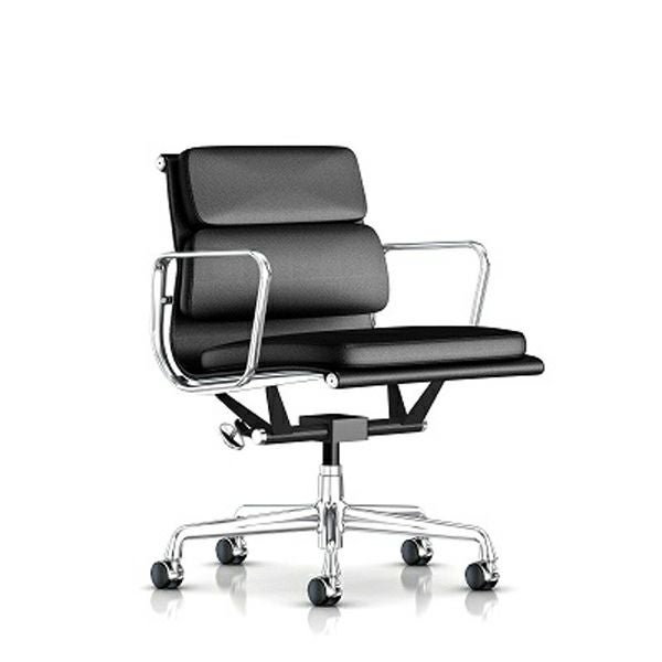 イームズソフトパッドグループ マネジメントチェア イームズソフトパッドグループ マネジメントチェア キャスターまたはグライズ:キャスター/キャスター:カーペット用(クロームフード)/ベース&フレーム:アルミバフ/張地:MCLレザー(ブラック)