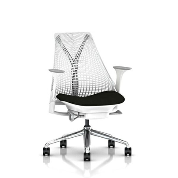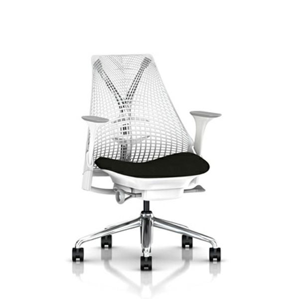 セイルチェア セイルチェア アーム:フルアジャスタブルアーム/サポートオプション:ランバーサポートなし/ベース&フレーム:ポリシュッドベース、ホワイトフレーム/キャスター:堅床・カーペット用/サスペンションフィニッシュ:スタジオホワイト/アームフィニッシュ:フォグ/張地:ファブリック(コスモス:マーキュリー)