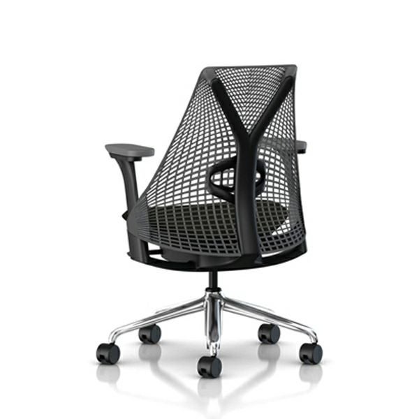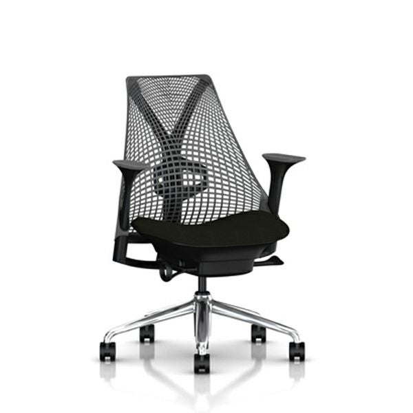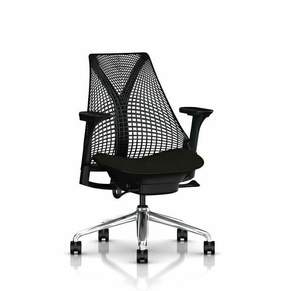 セイルチェア セイルチェア アーム:フルアジャスタブルアーム/サポートオプション:ランバーサポートなし/ベース&フレーム:ポリッシュドベース、ブラックフレーム/サスペンションフィニッシュ:ブラック/アームフィニッシュ:ブラック/張地:ファブリック(コスモス:ノアール(オリーブ))キャスター:堅床/カーペット用