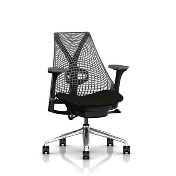 セイルチェア セイルチェア アーム:フルアジャスタブルアーム/サポートオプション:ランバーサポートあり/ベース&フレーム:ポリッシュドベース、ブラックフレーム/キャスター:堅床・カーペット用キャスター/サスペンションフィニッシュ:ブラック/アームフィニッシュ:ブラック/張地:ファブリック(メドレー:シンダー)