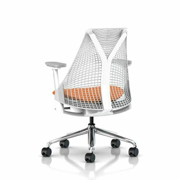セイルチェア セイルチェア アーム:フルアジャスタブルアーム/サポートオプション:ランバーサポートなし/ベース&フレーム:ポリシュッドベース、ホワイトフレーム/キャスター:堅床・カーペット用/サスペンションフィニッシュ:スタジオホワイト/アームフィニッシュ:フォグ/張地:ファブリック(コスモス:スパイス)