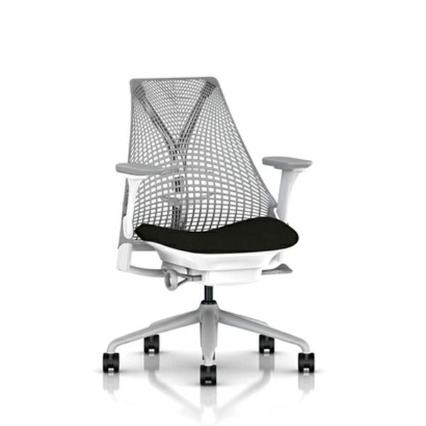セイルチェア セイルチェア アーム:フルアジャスタブルアーム/サポートオプション:ランバーサポートあり/ベース&フレーム:フォグベース、ホワイトフレーム/キャスター:カーペット用/サスペンション&アーム:フォグ / フォグ/張地:ファブリック(コスモス:ブラック)