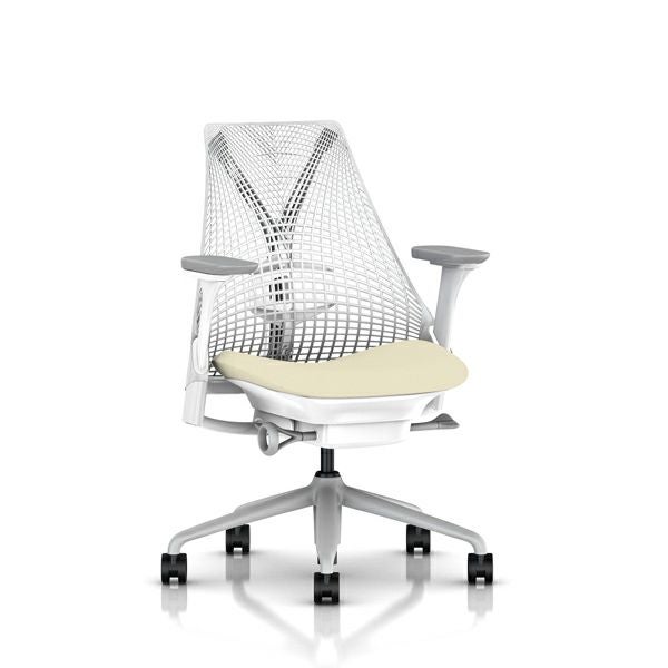 セイルチェア セイルチェア アーム:フルアジャスタブルアーム/サポートオプション:ランバーサポートあり/ベース&フレーム:フォグベース、ホワイトフレーム/キャスター:カーペット用/サスペンション&アーム:スタジオホワイト / フォグ/張地:ファブリック(ゼン:クラウド)