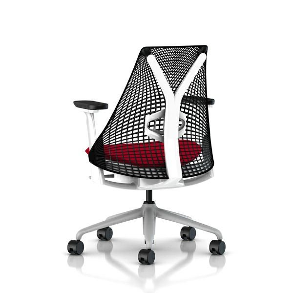 セイルチェア セイルチェア アーム:フルアジャスタブルアーム/サポートオプション:ランバーサポートあり/ベース&フレーム:フォグベース、ホワイトフレーム/キャスター:カーペット用/サスペンション&アーム:ブラック / ブラック/張地:ファブリック(ゼン:スカーレット)