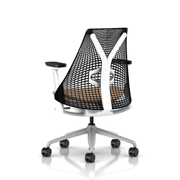 セイルチェア セイルチェア アーム:フルアジャスタブルアーム/サポートオプション:ランバーサポートあり/ベース&フレーム:フォグベース、ホワイトフレーム/キャスター:カーペット用/サスペンション&アーム:ブラック / ブラック/張地:ファブリック(ゼン:オートミール)
