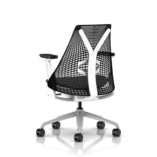 セイルチェア セイルチェア アーム:フルアジャスタブルアーム/サポートオプション:ランバーサポートあり/ベース&フレーム:フォグベース、ホワイトフレーム/キャスター:カーペット用/サスペンション&アーム:ブラック / ブラック/張地:ファブリック(コスモス:グラナイト)