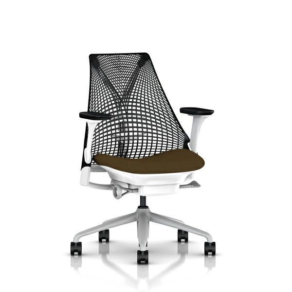 セイルチェア セイルチェア アーム:フルアジャスタブルアーム/サポートオプション:ランバーサポートあり/ベース&フレーム:フォグベース、ホワイトフレーム/キャスター:カーペット用/サスペンション&アーム:ブラック / ブラック/張地:ファブリック(コスモス:ウォールナット)