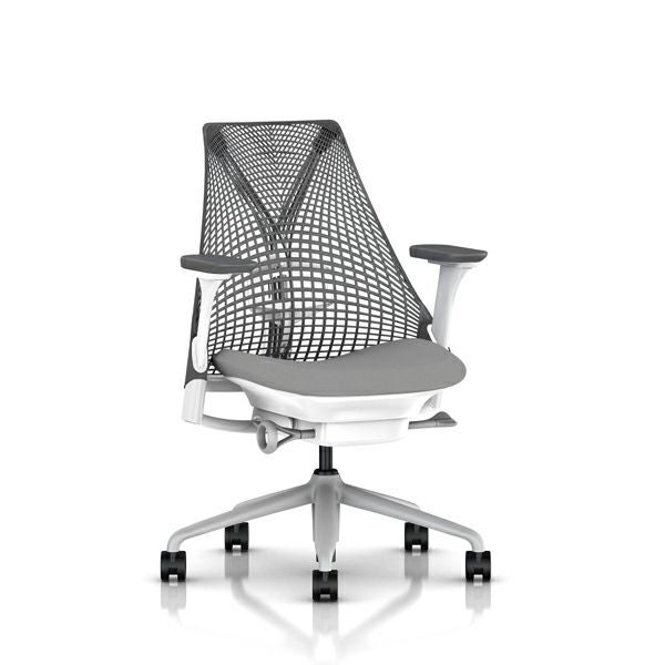 セイルチェア セイルチェア アーム:フルアジャスタブルアーム/サポートオプション:ランバーサポートあり/ベース&フレーム:フォグベース、ホワイトフレーム/サスペンションフィニッシュ:スレートグレー/アームフィニッシュ:スレートグレー/張地:ファブリック(メドレー:フェザーグレー)