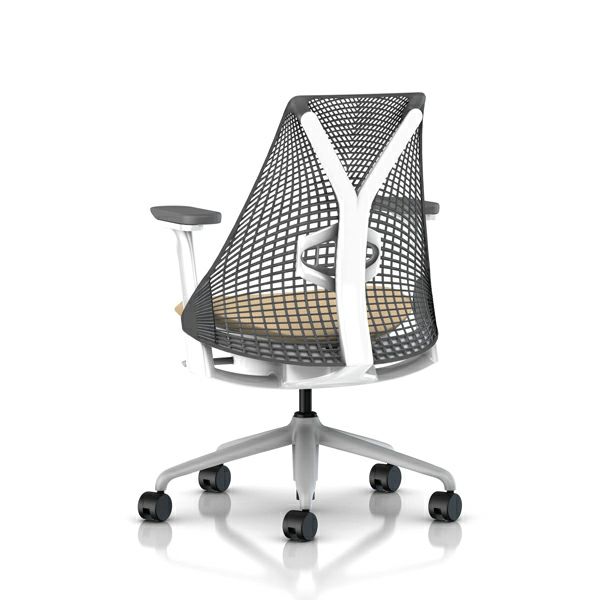 セイルチェア セイルチェア アーム:フルアジャスタブルアーム/サポートオプション:ランバーサポートあり/ベース&フレーム:フォグベース、ホワイトフレーム/キャスター:カーペット用/サスペンション&アーム:スレートグレー / スレートグレー/張地:ファブリック(ゼン:サンド)