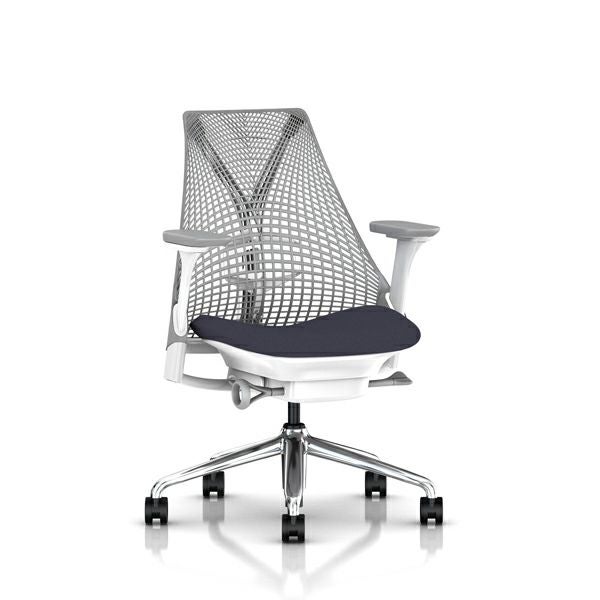 セイルチェア セイルチェア アーム:フルアジャスタブルアーム/サポートオプション:ランバーサポートあり/ベース&フレーム:ポリシュッドベース、ホワイトフレーム/キャスター:カーペット用/サスペンション&アーム:フォグ / フォグ/張地:ファブリック(ゼン:ペトロリアム)