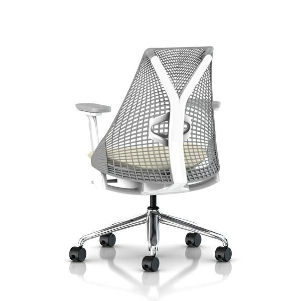セイルチェア セイルチェア アーム:フルアジャスタブルアーム/サポートオプション:ランバーサポートあり/ベース&フレーム:ポリシュッドベース、ホワイトフレーム/キャスター:カーペット用/サスペンション&アーム:フォグ / フォグ/張地:ファブリック(ゼン:クラウド)