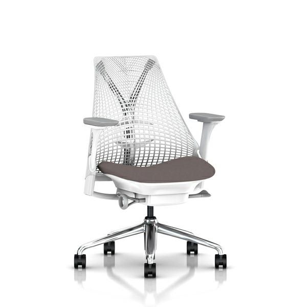 セイルチェア セイルチェア アーム:フルアジャスタブルアーム/サポートオプション:ランバーサポートあり/ベース&フレーム:ポリシュッドベース、ホワイトフレーム/サスペンションフィニッシュ:スタジオホワイト/アームフィニッシュ:フォグ/張地:ファブリック(メドレー:チャコール)