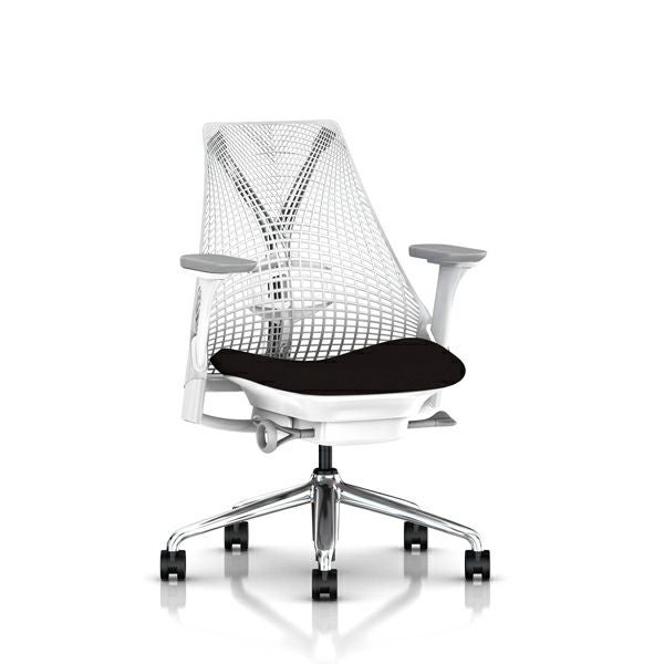 セイルチェア セイルチェア アーム:フルアジャスタブルアーム/サポートオプション:ランバーサポートあり/ベース&フレーム:ポリシュッドベース、ホワイトフレーム/キャスター:カーペット用/サスペンション&アーム:スタジオホワイト / フォグ/張地:ファブリック(ゼン:オニキス)