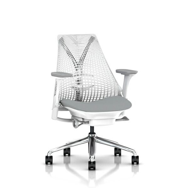 セイルチェア セイルチェア アーム:フルアジャスタブルアーム/サポートオプション:ランバーサポートあり/ベース&フレーム:ポリシュッドベース、ホワイトフレーム/キャスター:カーペット用/サスペンション&アーム:スタジオホワイト / フォグ/張地:ファブリック(ゼン:マーキュリー)