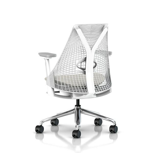 セイルチェア セイルチェア アーム:フルアジャスタブルアーム/サポートオプション:ランバーサポートあり/ベース&フレーム:ポリシュッドベース、ホワイトフレーム/キャスター:カーペット用/サスペンション&アーム:スタジオホワイト / フォグ/張地:ファブリック(コスモス:ムーンシャドウ)