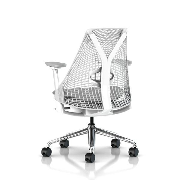 セイルチェア セイルチェア アーム:フルアジャスタブルアーム/サポートオプション:ランバーサポートあり/ベース&フレーム:ポリシュッドベース、ホワイトフレーム/キャスター:カーペット用/サスペンション&アーム:スタジオホワイト / フォグ/張地:ファブリック(コスモス:マーキュリー)