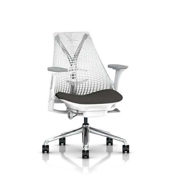 セイルチェア セイルチェア アーム:フルアジャスタブルアーム/サポートオプション:ランバーサポートあり/ベース&フレーム:ポリシュッドベース、ホワイトフレーム/キャスター:カーペット用/サスペンション&アーム:スタジオホワイト / フォグ/張地:ファブリック(コスモス:グラナイト)
