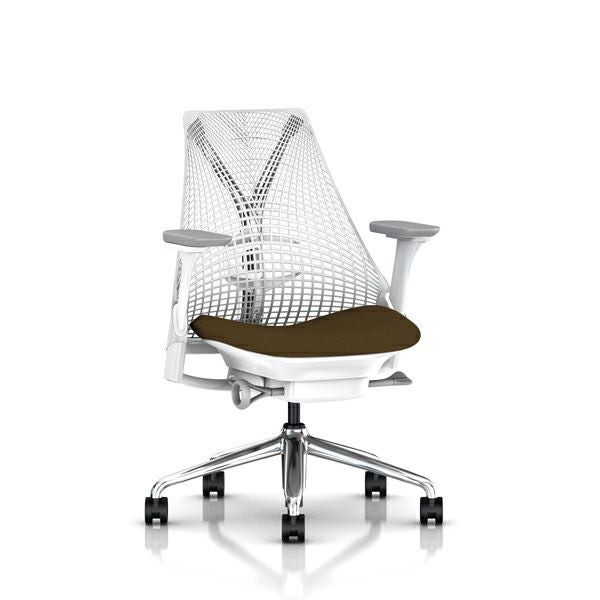 セイルチェア セイルチェア アーム:フルアジャスタブルアーム/サポートオプション:ランバーサポートあり/ベース&フレーム:ポリシュッドベース、ホワイトフレーム/キャスター:カーペット用/サスペンション&アーム:スタジオホワイト / フォグ/張地:ファブリック(コスモス:ウォールナット)
