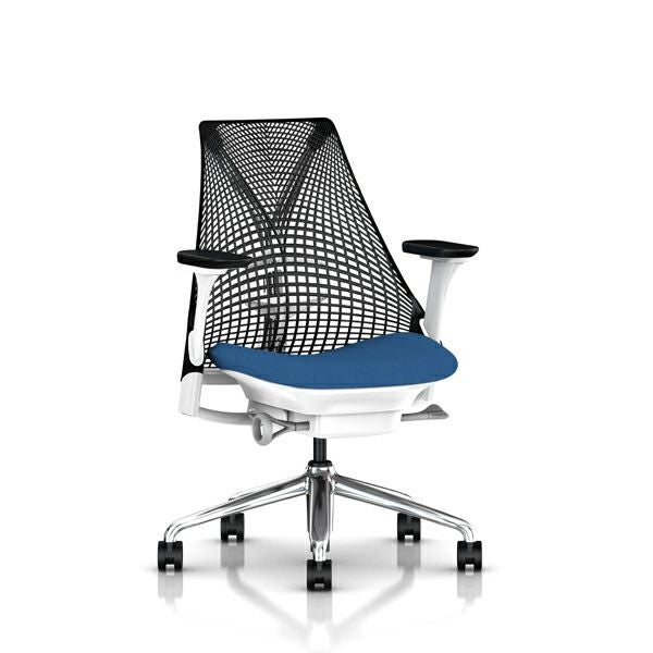 セイルチェア セイルチェア アーム:フルアジャスタブルアーム/サポートオプション:ランバーサポートあり/ベース&フレーム:ポリシュッドベース、ホワイトフレーム/サスペンションフィニッシュ:ブラック/アームフィニッシュ:ブラック/張地:ファブリック(メドレー:ブルーグロット)