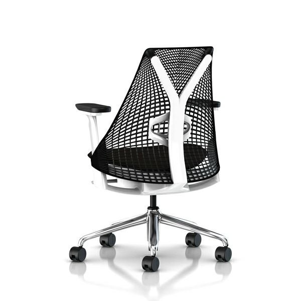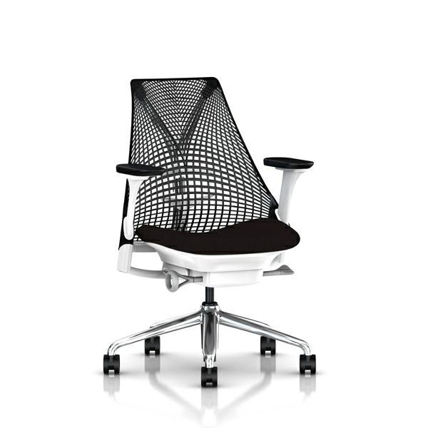 セイルチェア セイルチェア アーム:フルアジャスタブルアーム/サポートオプション:ランバーサポートあり/ベース&フレーム:ポリシュッドベース、ホワイトフレーム/キャスター:カーペット用/サスペンション&アーム:ブラック / ブラック/張地:ファブリック(ゼン:オニキス)