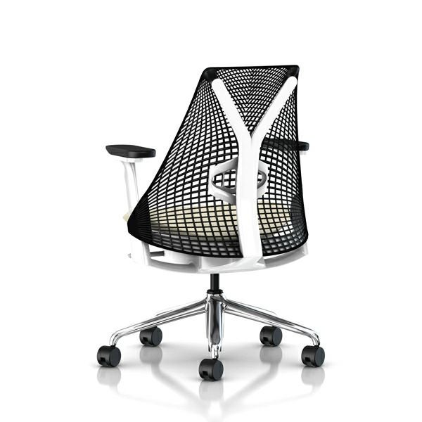 セイルチェア セイルチェア アーム:フルアジャスタブルアーム/サポートオプション:ランバーサポートあり/ベース&フレーム:ポリシュッドベース、ホワイトフレーム/キャスター:カーペット用/サスペンション&アーム:ブラック / ブラック/張地:ファブリック(ゼン:クラウド)