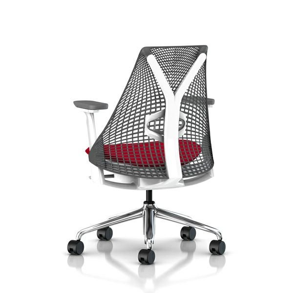 セイルチェア セイルチェア アーム:フルアジャスタブルアーム/サポートオプション:ランバーサポートあり/ベース&フレーム:ポリシュッドベース、ホワイトフレーム/キャスター:カーペット用/サスペンション&アーム:スレートグレー / スレートグレー/張地:ファブリック(ゼン:スカーレット)