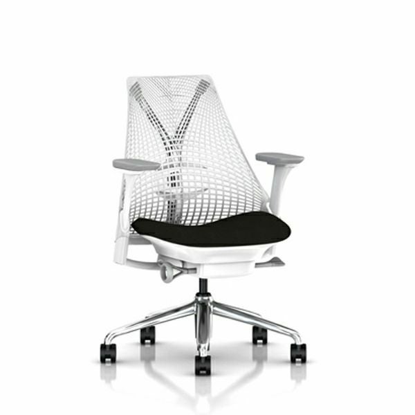 セイルチェア セイルチェア アーム:フルアジャスタブルアーム/サポートオプション:ランバーサポートあり/ベース&フレーム:ポリシュッドベース、ホワイトフレーム/キャスター:堅床・カーペット用/サスペンション:スタジオホワイト/アーム:フォグ/張地:ファブリック(コスモス:ブラック)