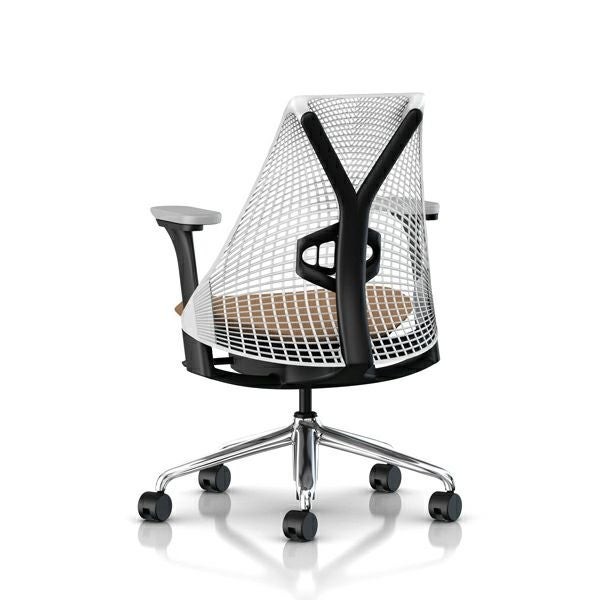 セイルチェア セイルチェア アーム:フルアジャスタブルアーム/サポートオプション:ランバーサポートあり/ベース&フレーム:ポリッシュドベース、ブラックフレーム/サスペンションフィニッシュ:スタジオホワイト/アームフィニッシュ:フォグ/張地:ファブリック(メドレー:トレイル)
