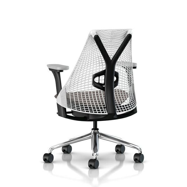 セイルチェア セイルチェア アーム:フルアジャスタブルアーム/サポートオプション:ランバーサポートあり/ベース&フレーム:ポリッシュドベース、ブラックフレーム/サスペンションフィニッシュ:スタジオホワイト/アームフィニッシュ:フォグ/張地:ファブリック(メドレー:チャコール)