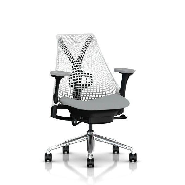 セイルチェア セイルチェア アーム:フルアジャスタブルアーム/サポートオプション:ランバーサポートあり/ベース&フレーム:ポリッシュドベース、ブラックフレーム/キャスター:カーペット用/サスペンション&アーム:スタジオホワイト / フォグ/張地:ファブリック(ゼン:マーキュリー)