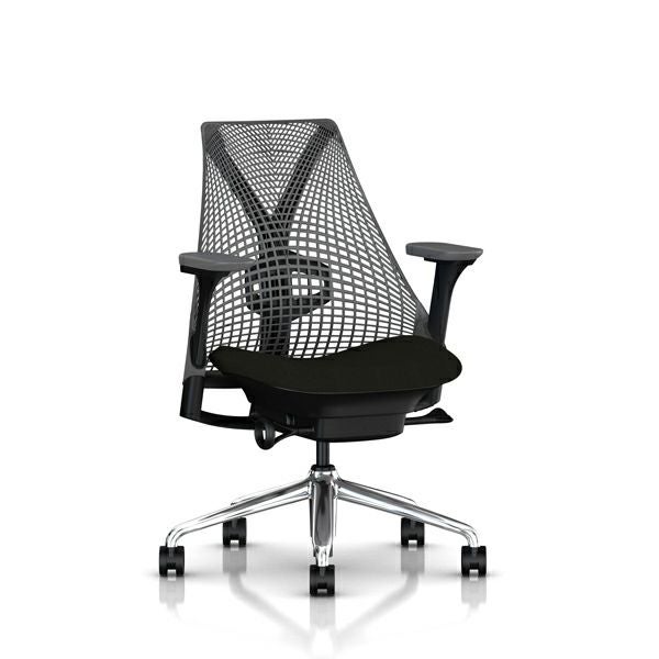 セイルチェア セイルチェア アーム:フルアジャスタブルアーム/サポートオプション:ランバーサポートあり/ベース&フレーム:ポリッシュドベース、ブラックフレーム/サスペンションフィニッシュ:スレートグレー/アームフィニッシュ:スレートグレー/張地:ファブリック(メドレー:シンダー)